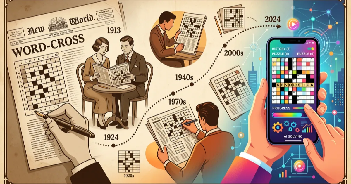 The crossword puzzle is one of the most enduring inventions of the 20th century. From a single diamond-shaped grid in a New York newspaper to AI-generated puzzles on smartphones, the crossword has been reinvented in every era while remaining fundamentally the same: clues, answers, and the satisfying click of letters falling into place.